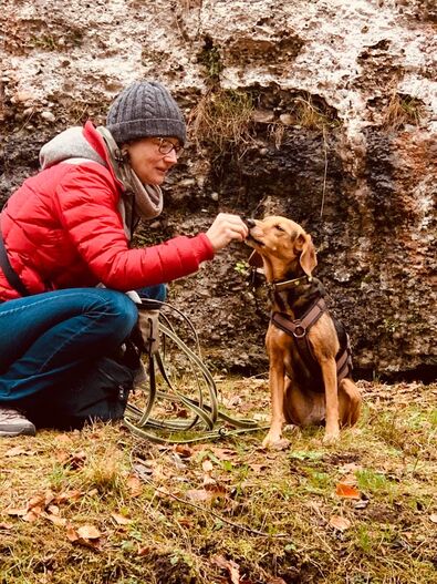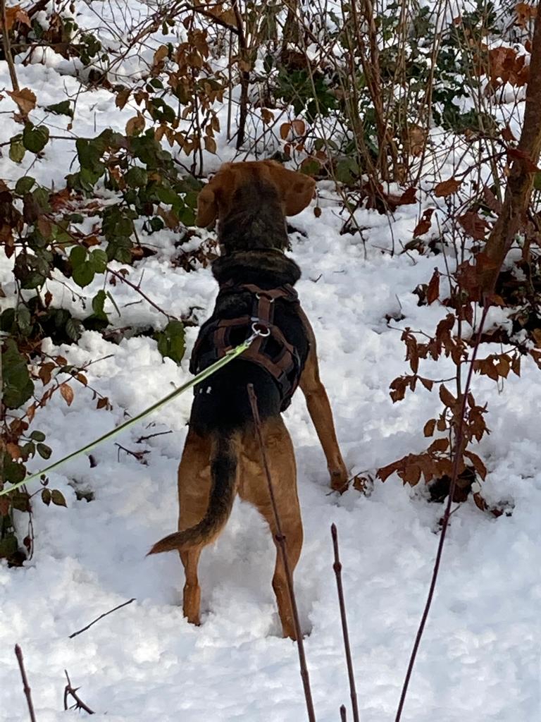 Dieser Weg war nicht ganz einfach, denn der intensive Jagdinstinkt von Gina hat uns mächtig auf Trab gehalten! Wir sind viele verschiedene Wege gegangen bis uns dann einer über Ulli Reichmann, die Autorin des Buches „Wege zur Freundschaft - eine Liebeserklärung an jagende Hunde“, zu Marlen Brandenberg geführt hat. Marlen war die erste Hundetrainerin, welche den gesamten Alltag von Gina mit uns zusammen angeschaut hat und nicht nur das „Jagdproblem“. Sie hat uns aufgezeigt, wie wir Teil vom Jagdspaziergang werden können, statt die Spassbremse am Ende der Leine zu sein! Und wie wichtig die Ruhephasen für Gina sind, v.a. nach intensiven Spaziergängen.
