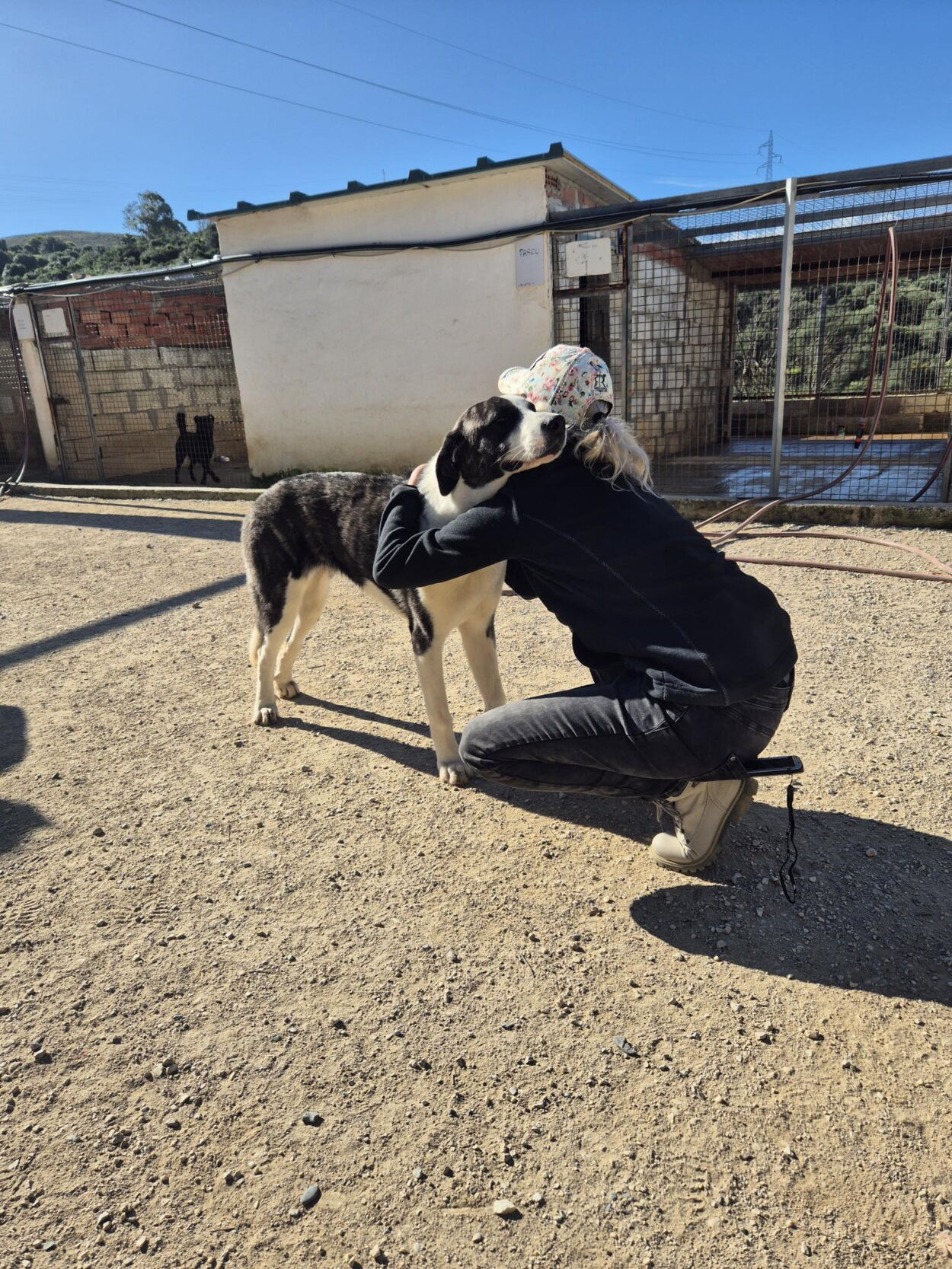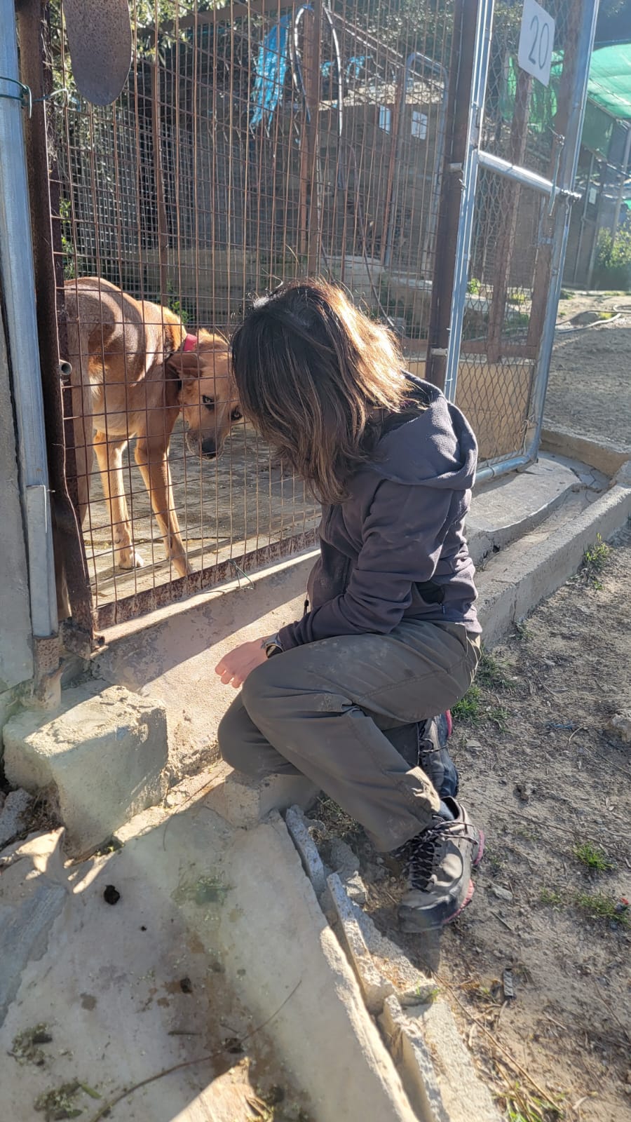 Vereinzelt wurden Hunde durch Menschen so schlimm behandelt, dass ihre Seelen trotz der Melampoliebe noch nicht geheilt sind und das vielleicht in dem Rahmen auch nie mehr können. Gerade diese armen, traurigen und ängstlicheren Seelen bräuchten dringend einen geschützten Rahmen, in dem nur sie mit IHREM Menschen zur Ruhe kommen und heilen können. Mir persönlich ist das sehr nahe gegangen – trotz dem fröhlichen, der eher unbeschwerten Hunde, hat mich die teilweise tiefe Sehnsucht der Hunde nach Liebe und IHREM Menschen sehr mitgenommen. Auf den ersten Blick könnte man denken, dass die Hunde ja hier eigentlich nichts mehr bräuchten, als sie haben; schöne Ausläufe, saubere Zwinger, gute Ernährung, eine gute medizinische Versorgung durch JJ (Juan Jesus – der Tierarzt😊!), Hundegesellschaft, Spielen und Rennen im Auslauf, aber (die meisten) Hunde brauchen auch Bindung zu einem Menschen, Familienanschluss, ein warmes Bett in einer ruhigen Umgebung, Sicherheit und Vertrautheit. Letztere Punkte sind auch in Melampo erfüllt, jedoch merkt man wirklich bei den meisten Hunden, dass sie auf IHREN Menschen warten und sich die Zuneigung von José und Co. einfach in Ministückchen teilen müssen. Die Blicke, die ich am Schluss ertragen musste, als ich mich verabschiedet habe, nachdem sie uns fast alle mit so viel Liebe überschüttet haben und wir sie nun doch zurücklassen mussten, haben mein Herz zerrissen. Auch jetzt während ich das schreibe und meine eigene wunderbare Hündin aus Bulgarien und meine adoptieren Katzen bei mir liegen, kommen mir die Tränen.