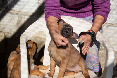 Alle Welpen haben bereits ihre ersten Impfungen bekommen. Für eine Sterilisation sind sie noch zu jung. Diese muss in der Schweiz nachgeholt werden, sobald die Hunde dazu alt genug sind. Die Geschichte mit dem ungewollten Nachwuchs soll sich ja nicht wiederholen… Die Welpen befinden sich noch im Wachstum und werden wohl noch deutlich grösser werden. Eine genaue Vorhersage ist allerdings schwierig, da wir die Elterntiere nicht kennen.