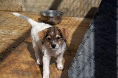 Die Kleinen haben sich zu fröhlichen, liebenswerten Welpen entwickelt. Sie sind völlig gesund und ihrem Alter entsprechend aktiv und verspielt. Die Welpen wachsen leider ohne Mutter auf, haben aber in Melampo Kontakt zu Hunden verschiedenen Alters. Da sie von den Helfern in Melampo liebevoll gepflegt und umsorfg werden, können sie gute Erfahrungen mit Menschen sammeln.