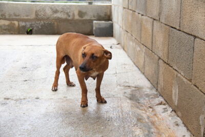 Als sich einige freiwillige Helfer von Melampo nach ihrem Dienst bei den Hunden auf den Heimweg machten, entdeckten sie in der Nähe des Tierheimes die süsse Breca. Sie schlief am Rand einer Strasse im Strassengraben. In dieser Nacht regnete es zudem noch stark: was für ein trauriger Anblick!
