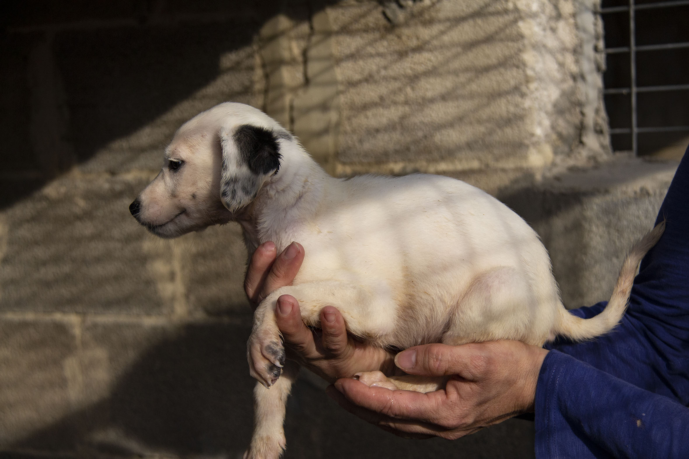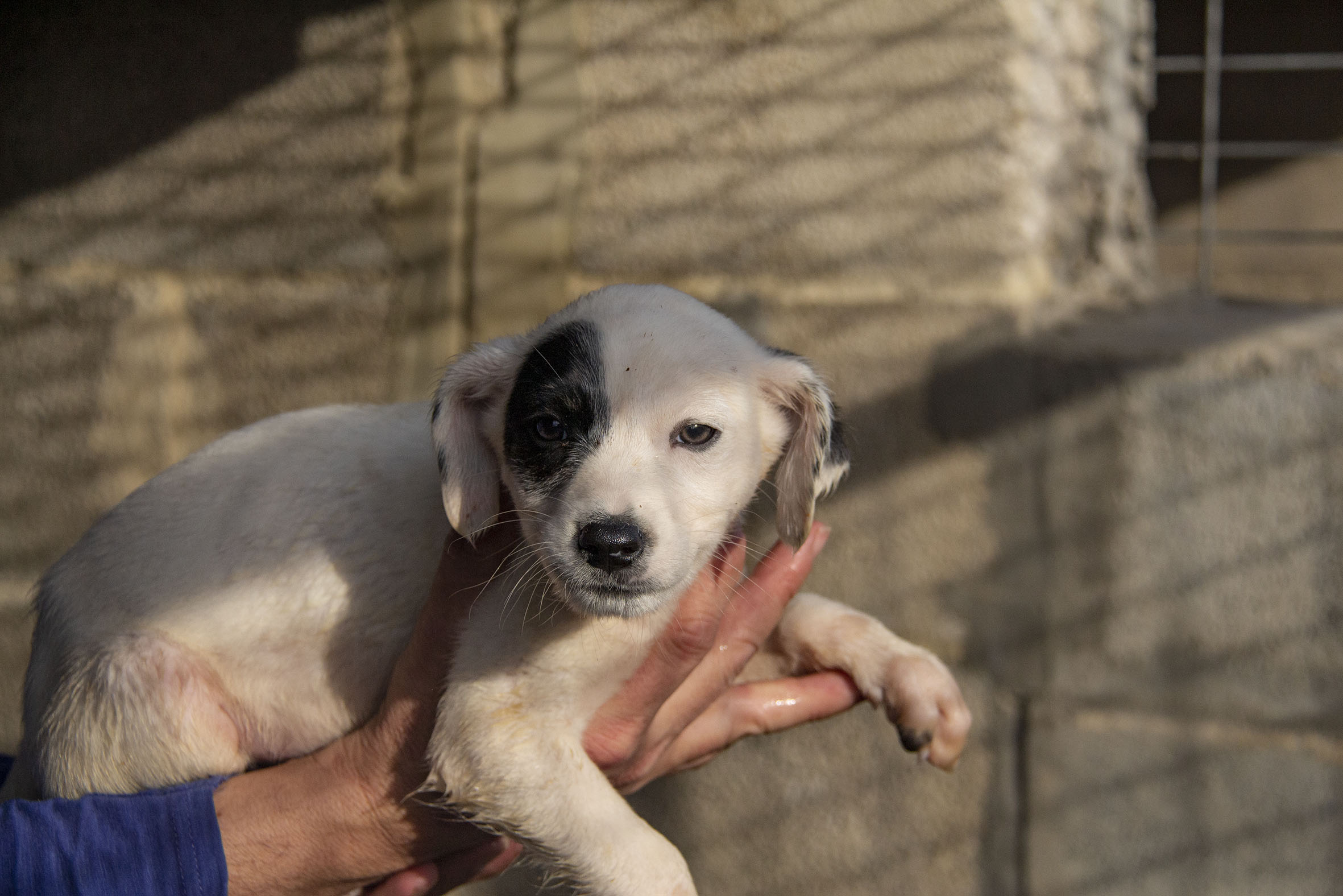 Die Mutterhündin Paloma wurde Rande einer Landstrasse gefunden. Ein Besitzer war weit und breit nicht in Sicht. Zum Glück konnten Helfer sie aus dieser gefährlichen Situation retten. Paloma war zu diesem Zeitpunkt auch noch hochträchtig. Paloma hatte zwar einen Chip und der Besitzer konnte auch kontaktiert werden. Er hatte allerdings kein Interesse daran, die Hündin zurückzunehmen (zu Palomas Glück).