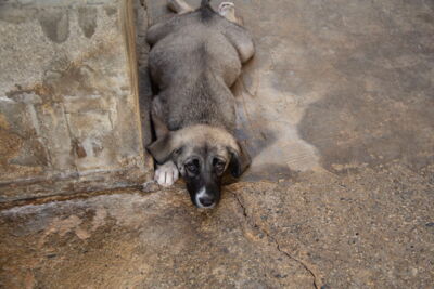 4 Welpen wurden über das Eingangstor von Melampo geworfen. Es handelt sich wohl um einen unerwünschten Wurf, weil ihre Mutter nicht sterilisiert wurde. Zum Glück sind sie in Melampo gelandet und nicht auf der Strasse..