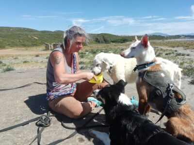 Dakota hat sich gut integriert, sie fasst immer mehr Vertrauen und inzwischen kuschelt sie gerne mit den freiwilligen Helfern. Sie liebt es geknuddelt zu werden und das Fell gebürstet zu bekommen. Sie sucht die Nähe zu bekannten Personen aber gegenüber fremden Menschen ist sie noch misstrauisch. Sie liebt es spazieren zu gehen und läuft gut an der Leine. Sie ist sauber in ihrem Gehege und ordentlich, nie bringt sie ihre Decken oder Bettchen durcheinander. Sie versteht sich mit Rüden und Hündinnen.