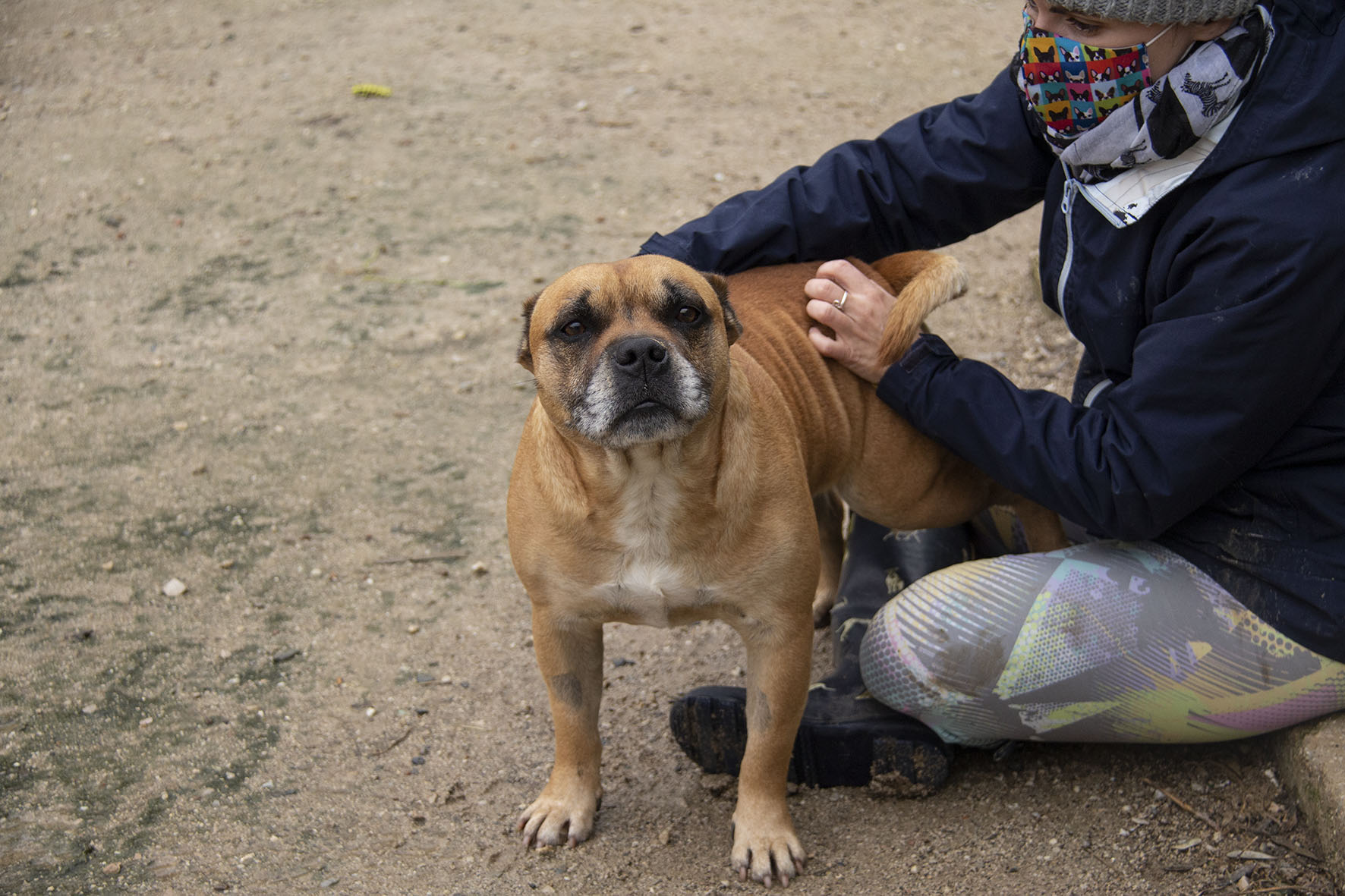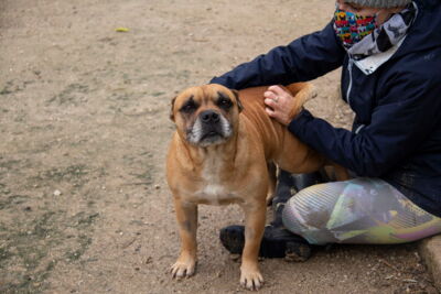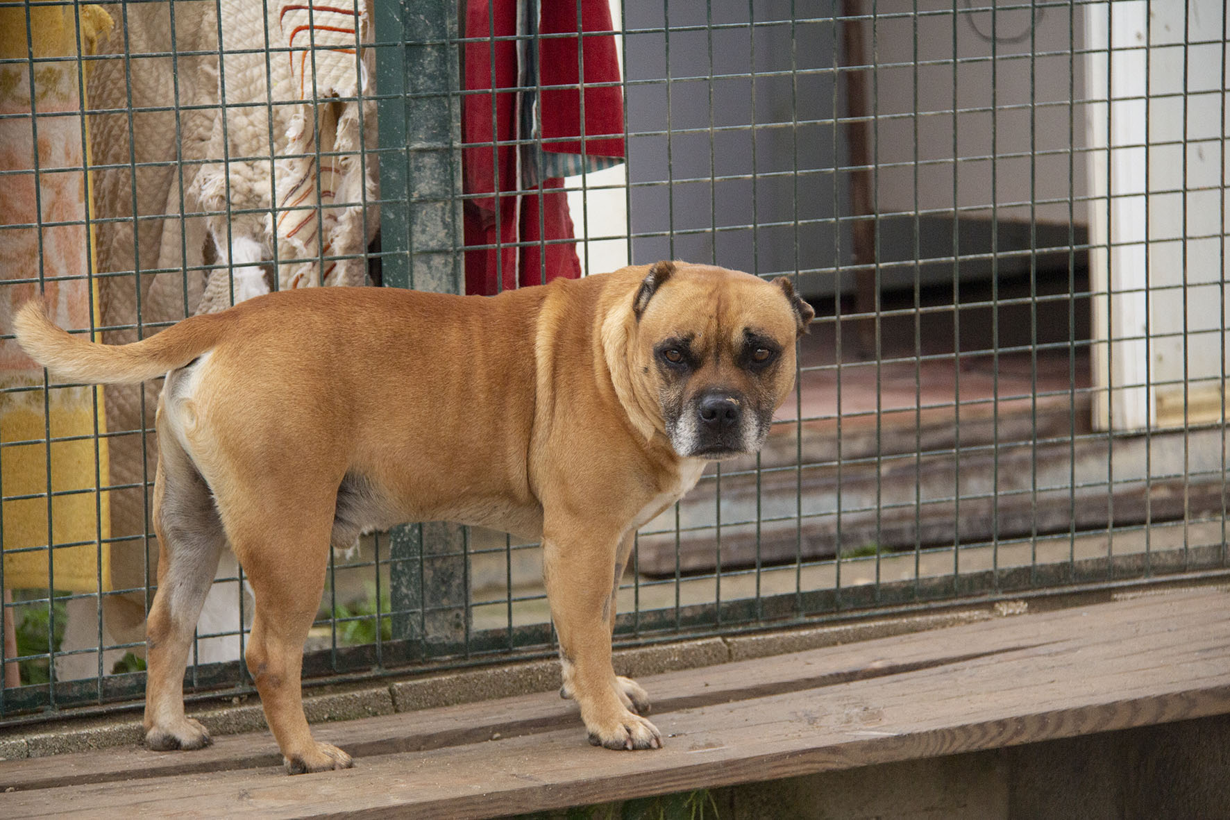 Unser lieber Ferdinand (der Stier) ist ein Bait Dog ein sogenannter Köderhund. Der dazu missbraucht wurde, um Hunde für Hundekämpfe scharf zu machen. Ihm Wurden beide Ohren ganz kurz abgeschnitten so wie sein Schwanz kupiert.