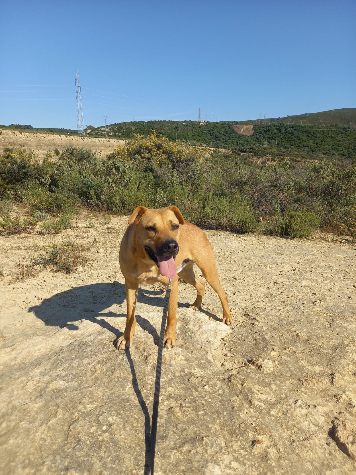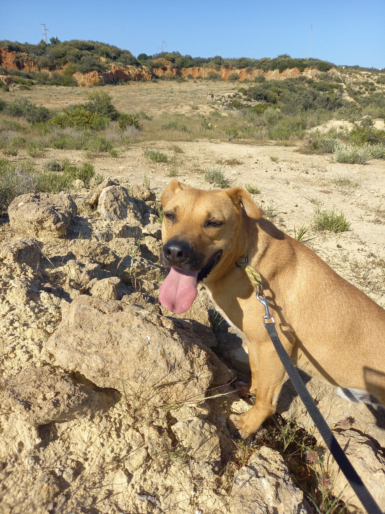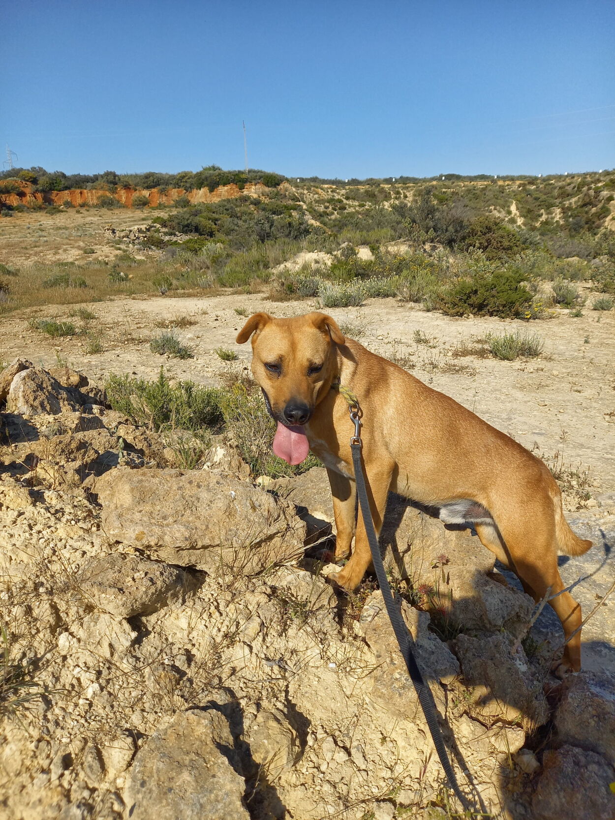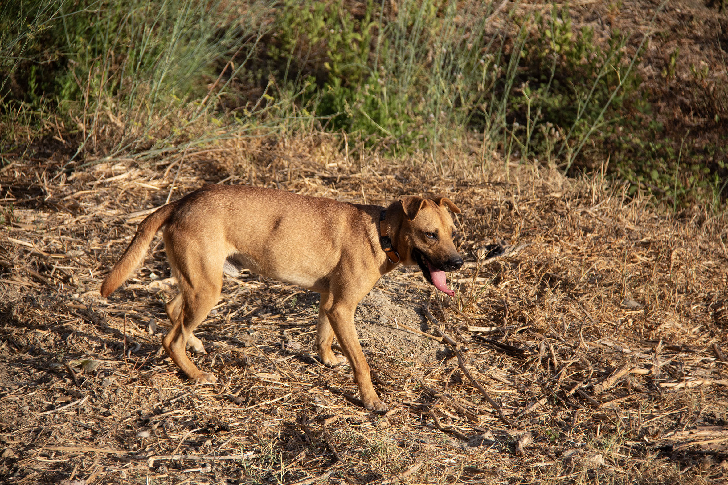 Er läuft gut an der Leine, ist dabei jedoch etwas aufgeregt. Wenn er angeleint ist, lässt er sich gut streicheln.