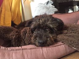 Goiko war einst bestimmt ein wunderschöner, süsser und Welpe mit weichem, gelocktem Fell. Aber wie jeder Welpe wurde auch er grösser und aktiver. So verlor seine Familie wohl ihr Interesse an ihm, er bekam weniger Zuwendung und sein einst so weiches Fell wurde nicht mehr gepflegt und verknotete nach und nach. Zum Schluss wurde Goiko dann entsorgt, indem er am Eingangstor von Melampo angebunden wurde: alleine, verängstigt, dünn und in sehr schlechtem Zustand.