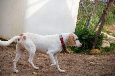Im Moment ist er noch etwas schüchtern und unterwürfig im Umgang mit Menschen, aber er fasst immer mehr Vertrauen zu den freiwilligen Helfern in Melampo. Er lässt sich gerne streicheln und akzeptiert auch die Leine. Er hat noch nie Anzeichen von Aggression gezeigt.