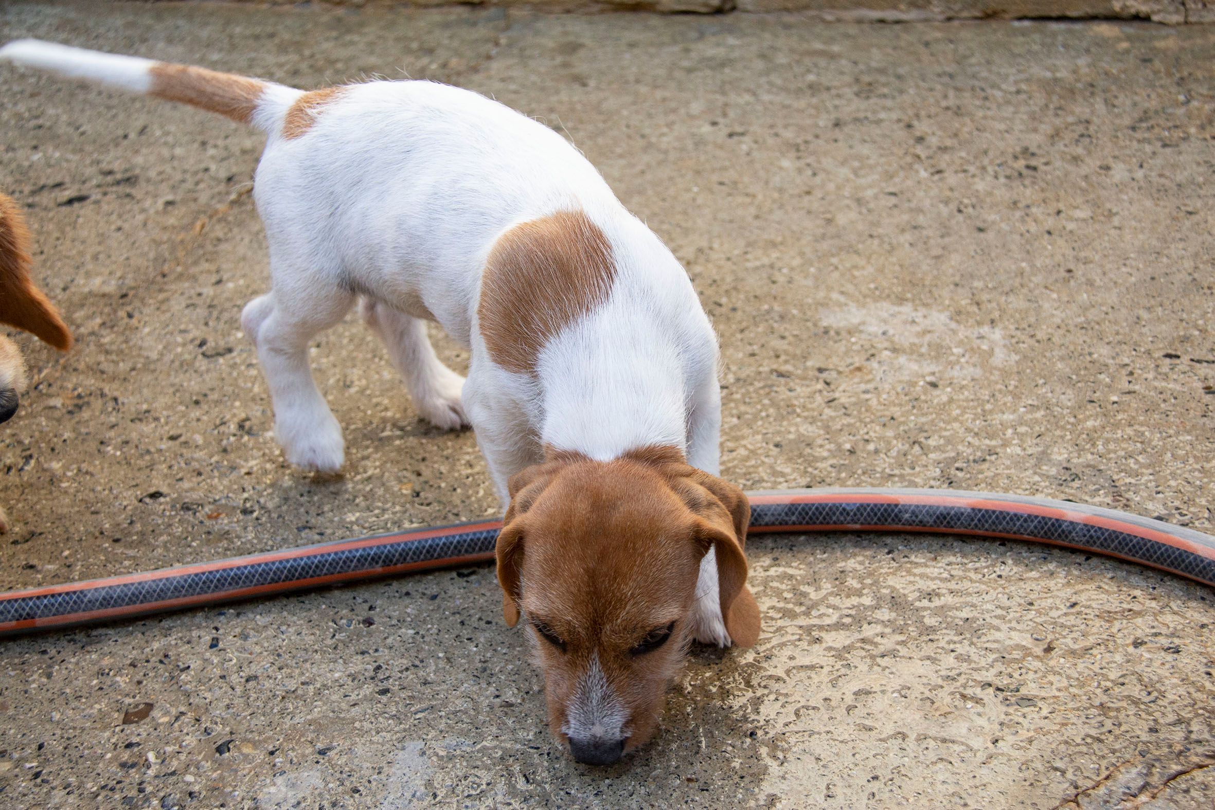 Die Mutterhündin Jara wurde mit ihren Welpen in der Umgebung von Melampo ausgesetzt. Jemand hatte sie wohl dort ausgesetzt. Zum Glück wurden Helfer auf die Hundefamilie aufmerksam. Zuerst wurden nur die Mutter und ein Welpe gefunden. Kurz darauf wurde auch der zweite Welpe gesichtet. In den nächsten zwei Tagen wurden dann noch zwei weitere Welpen entdeckt, die natürlich furchtbar durstig und hungrig waren. Die Trennung von ihrer Mutter setzte den Kleinen natürlich zu und zudem war es in diesen Tagen auch noch sehr heiss.