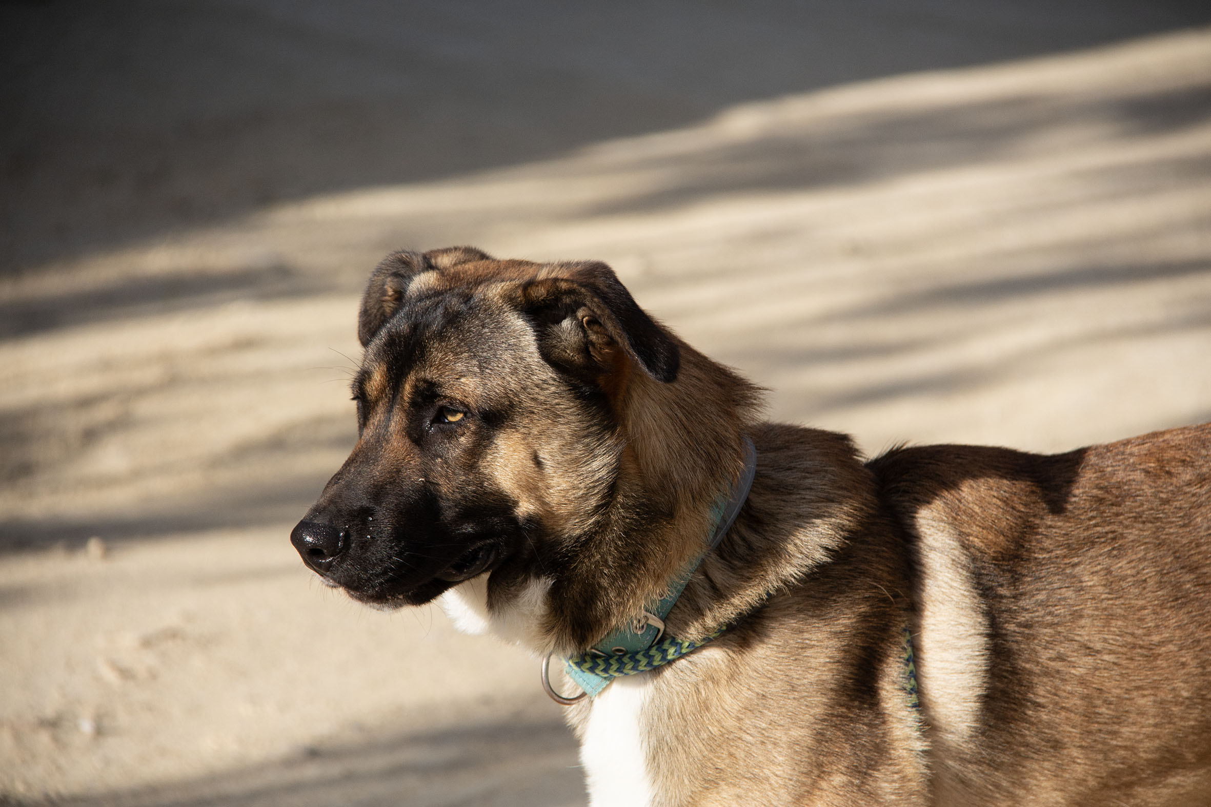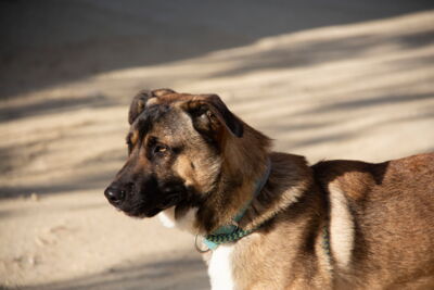 Es fällt ihm etwas schwer, Vertrauen zu Menschen zu fassen, besonders wenn man grob mit ihm umgeht oder ihn zu etwas zwingt – dann erschrickt er und verhält sich distanziert und unabhängig. Wir wissen nicht, wie und mit welchen Methoden er bisher erzogen wurde. Mit Ruhe und Geduld gewinnt er jedoch schnell Vertrauen – dann geniesst er Streicheleinheiten und zeigt sich sehr anhänglich und dankbar. Deshalb gehen wir davon aus, dass er sich mit liebevollen und klaren Methoden gut erziehen lässt. Wenn er gemeinsam mit anderen Hunden ausserhalb vom Camp spazieren geht, läuft er sehr gut mit. Er möchte einfach nur glücklich sein, spielen, rennen und darauf vertrauen können, dass ihm niemand etwas Böses tut.