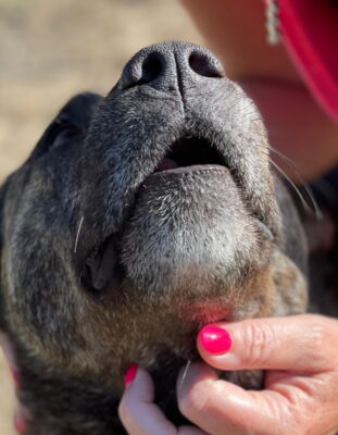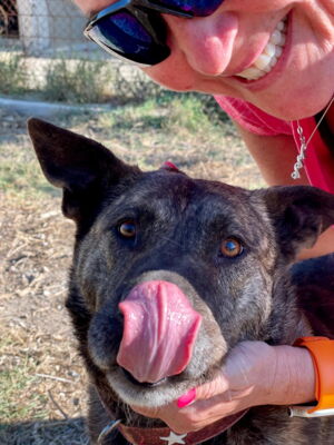 Im Umgang mit den Helfern ist Lala sehr sozial und liebevoll. Sie geniesst jede Aufmerksamkeit der Helfer. Wenn man sie mit einem Leckerli belohnt, nimmt sie dieses ganz sanft aus der Hand. Ein absolut liebenswerter Hund.