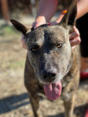 Wir denken, dass sie in ihrem bisherigen Leben wenig Kontakt zu anderen Hunden gehabt hat. Aktuell erleben wir sie im Umgang mit anderen Hunden als eher dominant. Wir müssen ihr Zeit geben, sich mit den anderen Hunden zu sozialisieren. Für den Moment denken wir, dass sie in einem Haushalt als Einzelhund besser aufgehoben wäre.