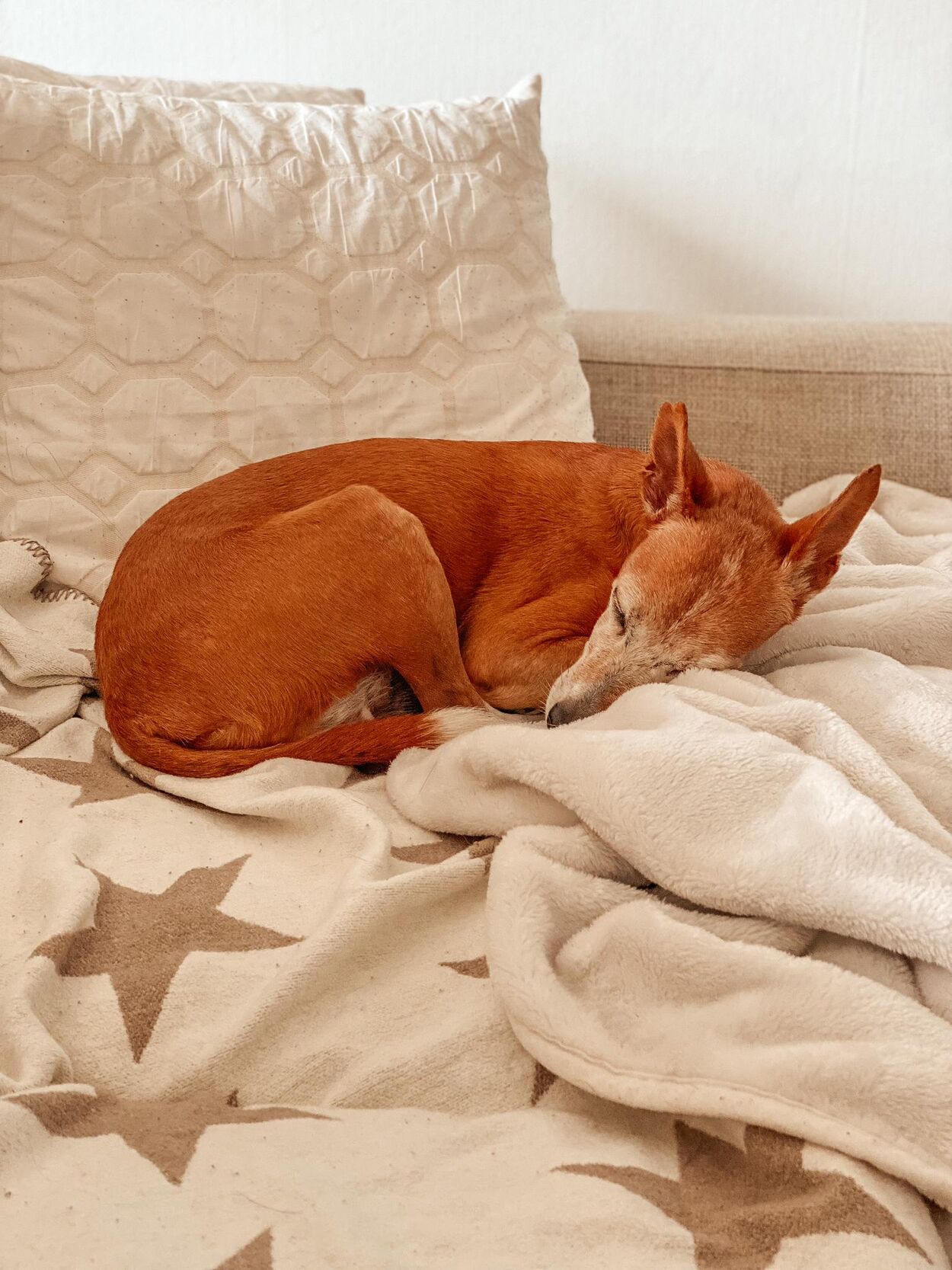 Linda lebte mit ihren drei Kindern (Lindo, Mimbra und Meiga) auf der Terrasse eines typisch andalusischen Hauses. Die Hunde lebten für eine lange Zeit völlig isoliert auf dieser Terrasse, ohne dass sie spazieren geführt wurden oder einmal auf die Strasse kamen. Ihr ehemaliger Besitzer war an Alzheimer erkrankt und konnte sich entsprechend nicht mehr richtig um die Hunde kümmern. Zum Glück konnte die Hundefamilie von Melampo aufgenommen werden.