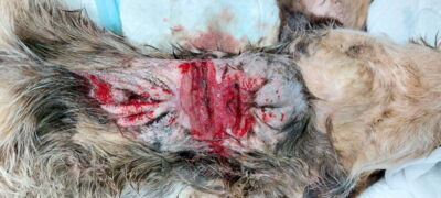 Im Video "Marques first day" sieht man, wie das eingefressene Halsband entfernt wird. Achtung nichts für schwache Nerven!