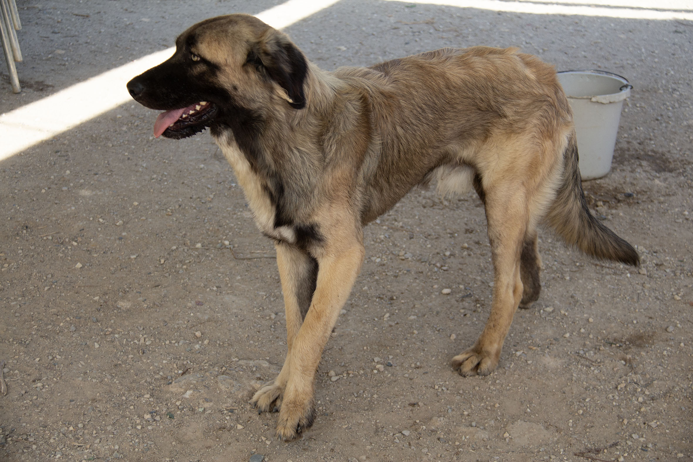 Milos und seine sieben Geschwister wurden über den Zaun von Melampo geworfen, als sie erst fünf Wochen alt waren. Wahrscheinlich handelt es sich um einen ungewollten Wurf von einer unsterilisierten Mutterhündin.