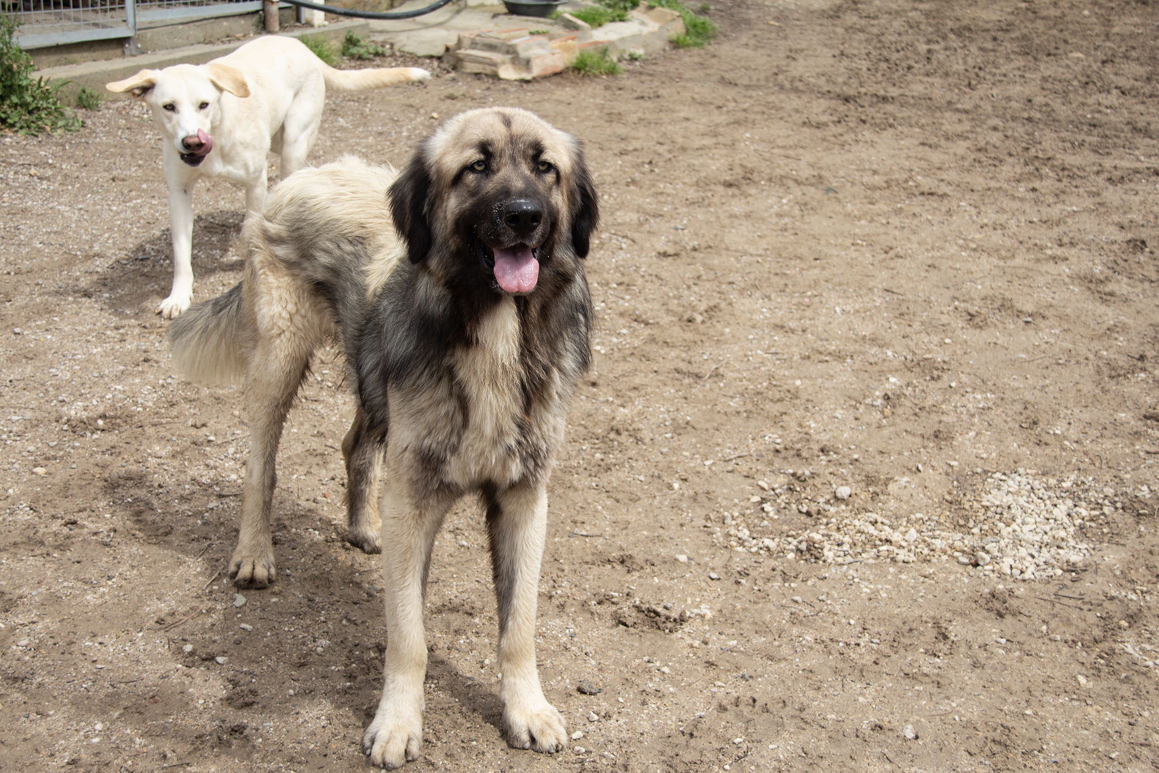 Milos hat einen guten Charakter, er sucht keinen Streit, aber wenn er stark bedrängt wird, weiss er sich zu verteidigen. Er ist gehorsam und lässt sich gut führen. Er lebt mit Rüden und Hündinnen zusammen und geht problemlos in der grossen Hundegruppe in den Auslauf. Menschen gegenüber ist er anhänglich und sucht aktiv ihre Aufmerksamkeit.