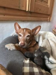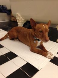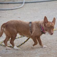 Nigeria wurde an einer Tankstelle gefunden. Sie hielt sich schon mehrere Tage dort auf, um in den Abfällen nach Futter zu suchen. Wahrscheinlich teilt Nigeria ihr Schicksal mit vielen anderen Podencos: sie werden einfach entsorgt, wenn sie für die Jagd nicht taugen..
