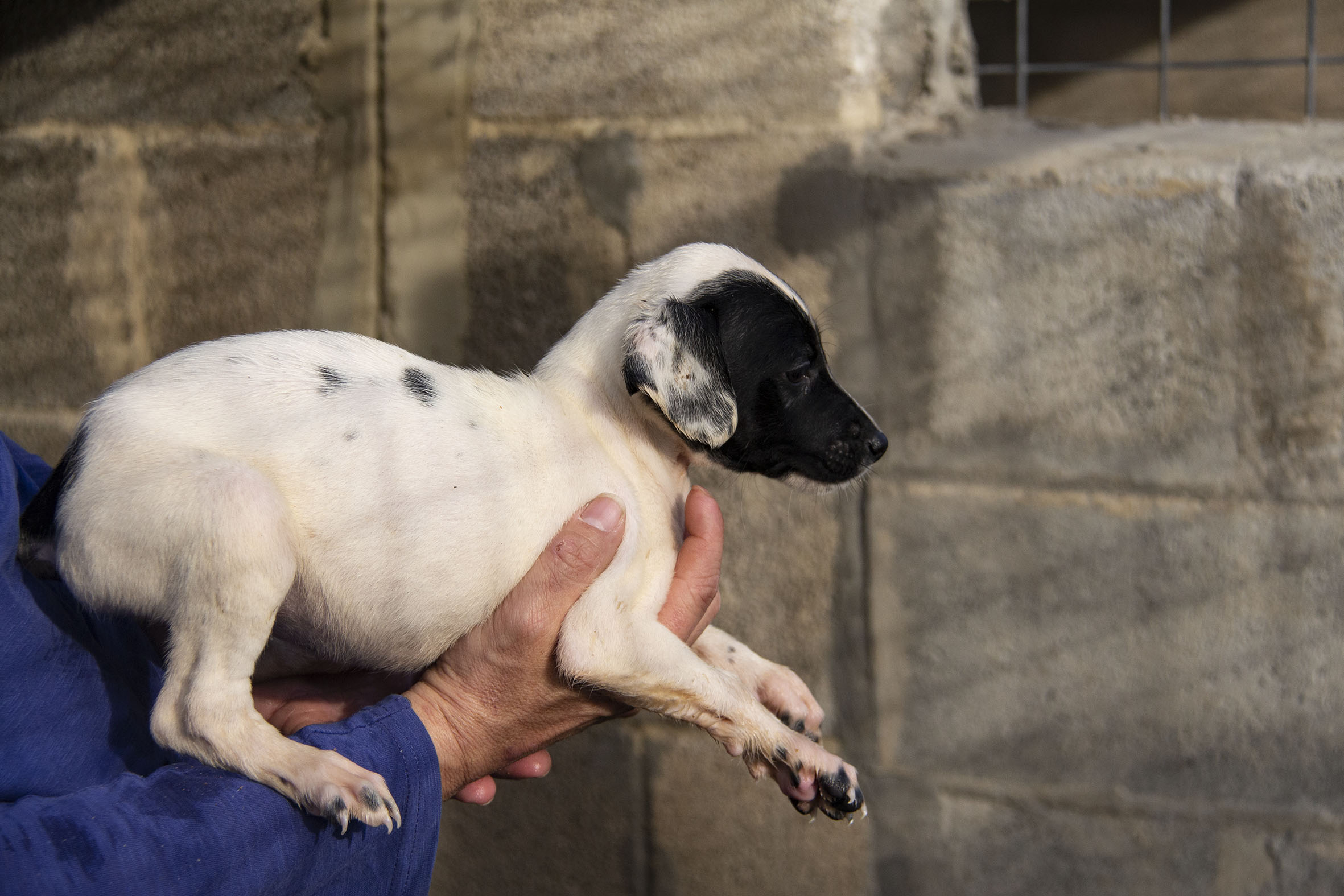 Die Mutterhündin Paloma wurde Rande einer Landstrasse gefunden. Ein Besitzer war weit und breit nicht in Sicht. Zum Glück konnten Helfer sie aus dieser gefährlichen Situation retten. Paloma war zu diesem Zeitpunkt auch noch hochträchtig. Paloma hatte zwar einen Chip und der Besitzer konnte auch kontaktiert werden. Er hatte allerdings kein Interesse daran die Hündin zurückzunehmen (zu Palomas Glück).