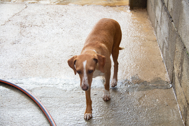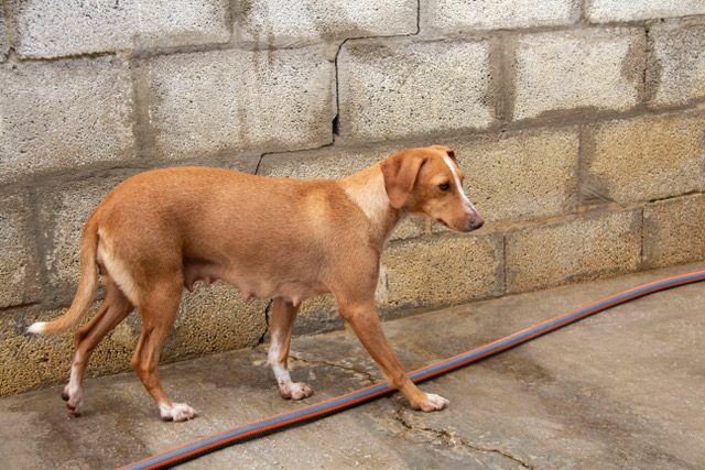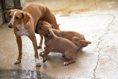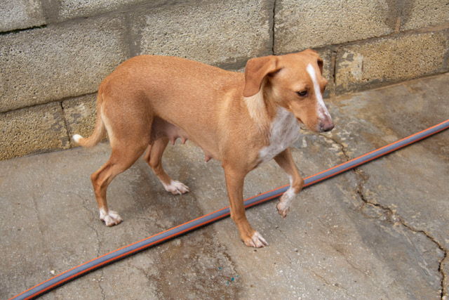 Noa wurde auf einem Feld in der Nähe eines Dorfes in der Umgebung von San Roque gefunden. Feige ausgesetzt und hochträchtig hatte Noa das Glück von Helfern entdeckt zu werden. Sie wurde sofort in Melampo in Sicherheit gebracht. Schon einige Tage später bekam sie in Melampo ihre vier Welpen. Noa ist eine wunderbare und fürsorgliche Mutter.