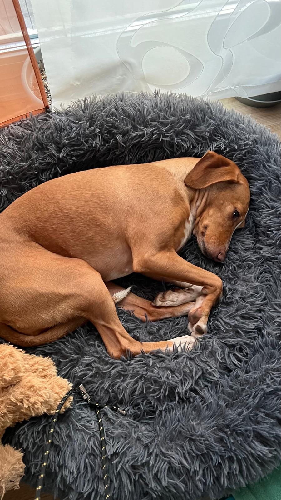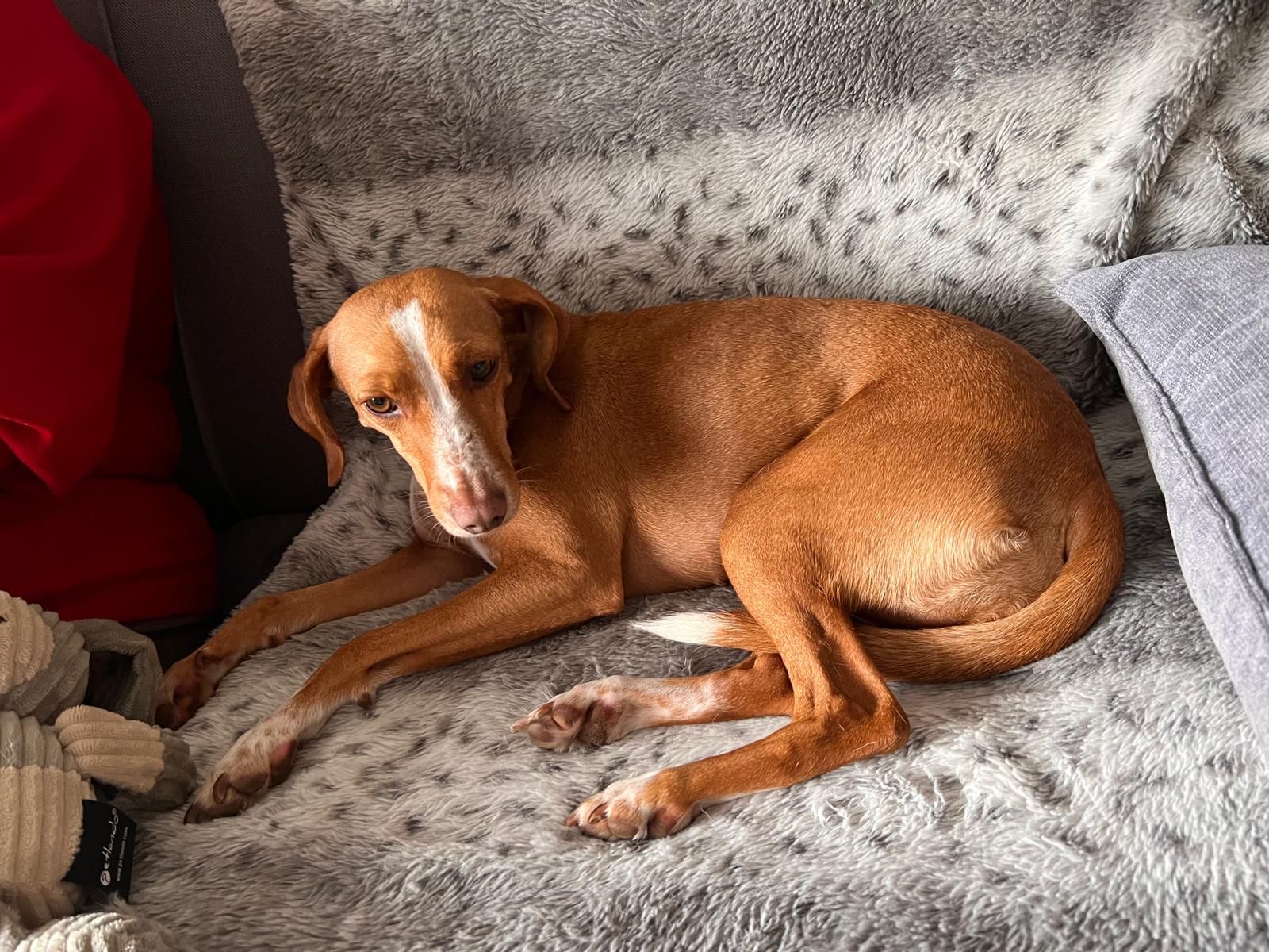 Zauberhafte Podenco-Mix-Hündin sucht einfühlsames Zuhause – am liebsten gemeinsam mit ihrem besten Freund Toni Unsere sensible Podenco-Mix-Dame ist eine echte Naturliebhaberin. Sie liebt lange, ruhige Spaziergänge über Felder und durch Wälder, wo sie sich frei und sicher fühlt. In der Natur kann sie mit entsprechendem Vertrauen auch ohne Leine laufen – in der Stadt hingegen ist ihr das zu viel Trubel, da bleibt sie lieber sicher an der Leine. Sie ist sehr sozial, liebt andere Hunde – und ganz besonders ihren treuen Gefährten Toni, mit dem sie durch dick und dünn geht. Die beiden sind ein eingespieltes Team, geben sich gegenseitig Halt und Sicherheit. Es wäre ein großes Glück, wenn Toni mitvermittelt werden könnte, denn alleine fühlt sie sich schnell unsicher. Ist Toni dabei, kann sie entspannt alleine bleiben. Unsere Hündin ist sensibel und in manchen Situationen ängstlich- zum Beispiel bei starkem Regen!