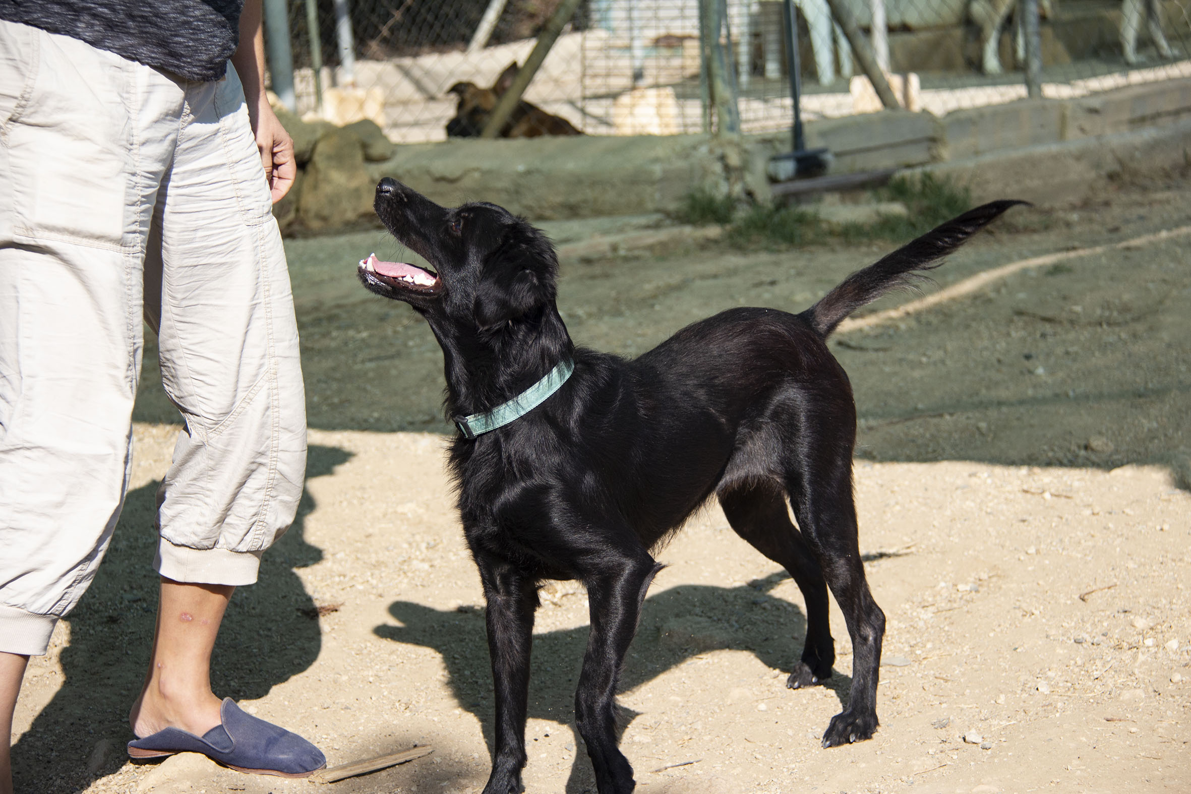 Nubia ist eine sehr aktive und verspielte Hündin. Sie ist gesellig gegenüber Menschen und den anderen Hunden. Sie mag keinen Ärger und geht Problemen aus dem Weg. Sie lebt mit Rüden und Hündinnen zusammen und geht in mit der grossen Gruppe in den Auslauf.