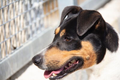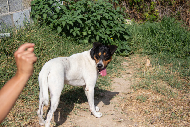 Parche ist noch jünger als Chispo und entsprechend aktiver. Er braucht in seiner neuen Familie neben viel Liebe auch genügend Bewegung und Beschäftigung.