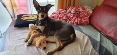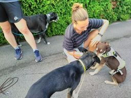 Das alleine bleiben ist ihr grösstes Thema, das ihr sehr schwerfällt und in ganz kleinen Schritten weiter aufgebaut werden muss. Auch die Gesellschaft anderer Hunde, die alleine sein können, konnten ihr bisher keine Sicherheit geben.