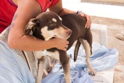 Peseta wurde zusammen mit ihren neugeborenen Welpen auf einem Feld gefunden. Wir wissen nicht, ob sie ausgesetzt wurde, weil sie ungewollten Nachwuchs auf die Welt brachte oder ob sie schon länger auf sich alleine gestellt lebte. Glücklicherweise wurde die Hundefamilie von einer Helferin entdeckt und in Melampo in Sicherheit gebracht.