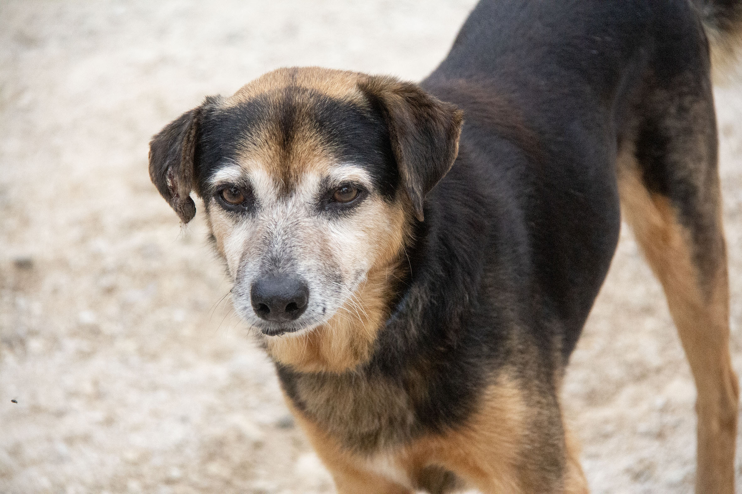 Poppet traute Menschen nicht überhaupt nicht. Als er im Camp ankam, liess er niemanden an sich heran. Poppet ist schüchtern aber auch sensibel. Mit jedem Tag hat er seine Angst Stück für Stück überwinden können und jeden Tag kommt er etwas näher. Mittlerweile ist es schon möglich ihn zu streicheln und seine Wunden zu pflegen. Es wird nicht mehr lange dauern bis wir richtig mit ihm kuscheln können.