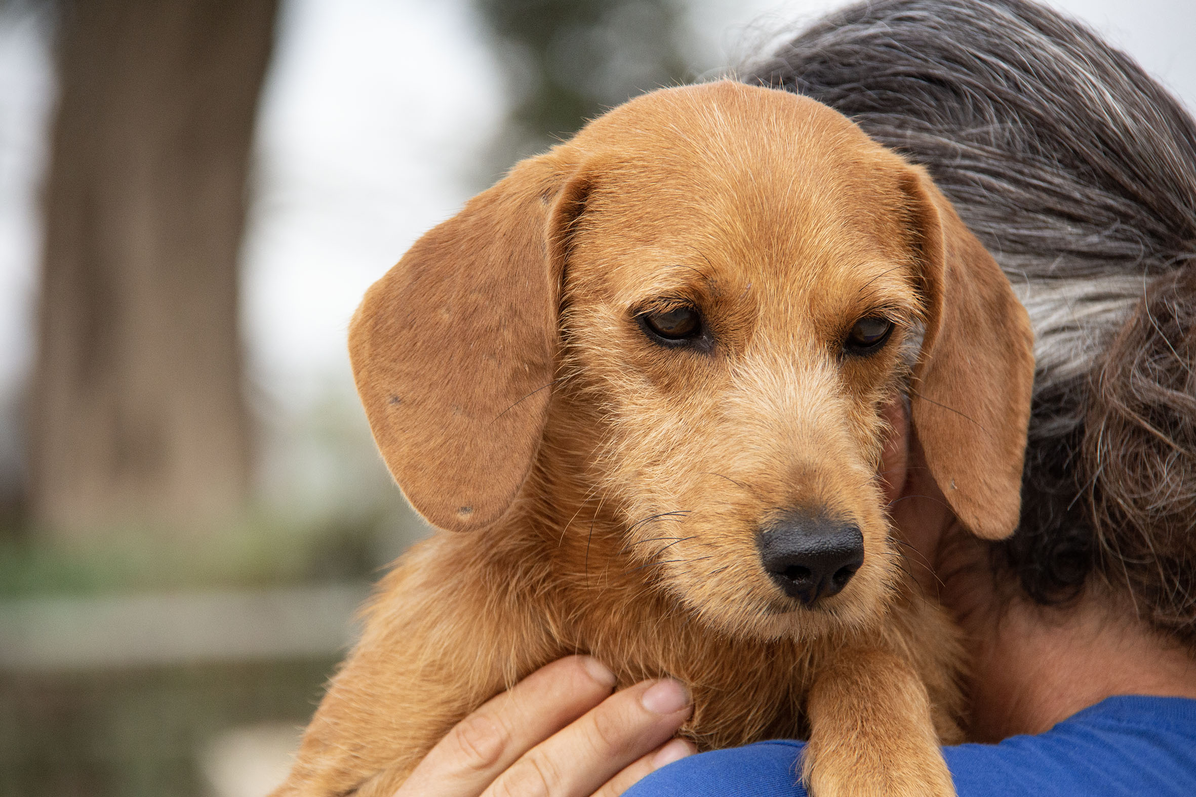 Rado wurde zusammen mit weiteren Hunden (Candela, Ceniza, Ascua, Olmo und Gordo) von einem trostlosen Ort gerettet, wo sie eingesperrt, ohne Wasser und Futter und inmitten ihrer eigenen Hinterlassenschaften leben mussten. Rados und Olmos Zustand waren erschreckend (wir haben einige Fotos beigefügt). Er war so dünn und dehydriert, dass es lebensgefährlich war. Im Melampo geht es ihm schon viel besser und er macht grosse Fortschritte. Die Mittelmeerkrankheiten wurden vom Tierarzt zum Glück negativ getestet.