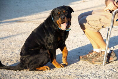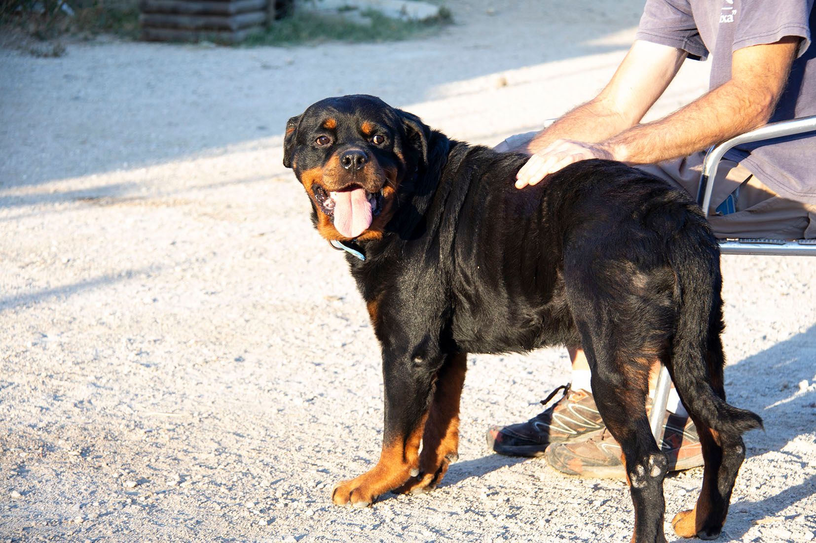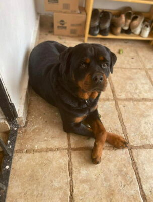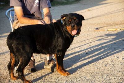 Rover ist im Umgang mit den Helfern sehr liebevoll. Er liebt die Aufmerksamkeit der Helfer und lässt sich gerne streicheln. Nach einiger Zeit in Melampo wurde der schöne Rover in Spanien adoptiert. Er hat dort zusammen mit anderen Hündinnen und Rüden gelebt. Mit diesen Hunden verstand er sich gut. Doch die Familie besass bereits einen weiteren Rottweiler. Es handelte sich um einen eher dominanten Rüden. Mit diesem Hund kam Rover leider nicht klar. Die Familie entschied, dass sie Rover nicht dauerhaft behalten können. Und darum wartet er nun wieder auf seine zweite Chance auf ein liebevolles Zuhause..