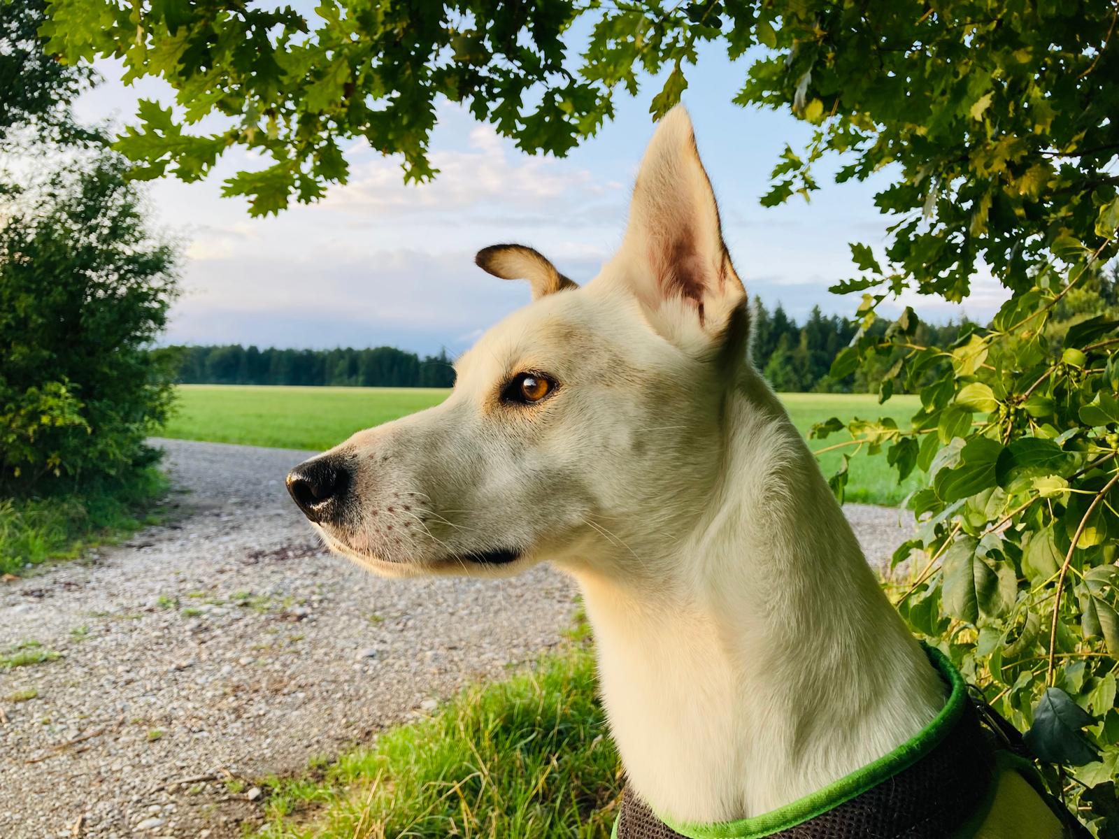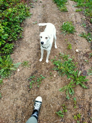 Sein Gehorsam ist erstaunlich gut, für das, dass wir zusammen nie trainiert haben. Die Befehle «warte, chehrä, hier, fuss usw.» funktionieren 1A und er ist weitgehend ohne Leine unterwegs. Sobald wir andere Personen, Jogger oder Velos gesehen haben und auch kreuzten, musste er einfach bei fuss laufen, meist auch für einen kurzen Moment an der Leine, einfach zur Sicherheit und er macht grundsätzlich keine Anstalten die «Gegenpartei» anzukläffen o.ä., ausser, Personen, besonders Männer, mit Baseballcaps, ihnen gegenüber ist er super unsicher, zieht den Schwanz ein und bellt.