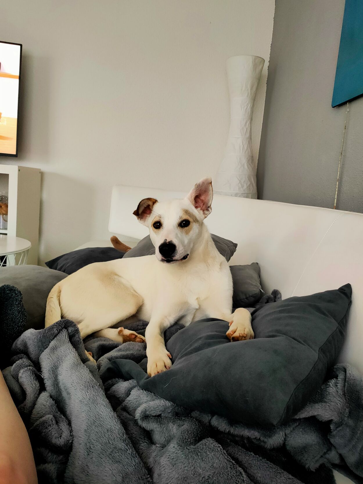 Er blühte langsam wieder auf, seine altbekannte Macke Plüschtiere zu schreddern und auszuhöhlen kam wieder, die Rute nicht mehr zwischen die Hinterläufe gezogen, an jeder Ecke schnüffeln beim Spaziergang etc.. Und dann kam der Schnee.... Er liebt es im Schnee zu toben, Schneebälle jagen, wälzen, gefrorene Pfützen zu knacken, im Schnee sah man sein freudiges, verspieltes Wesen.
