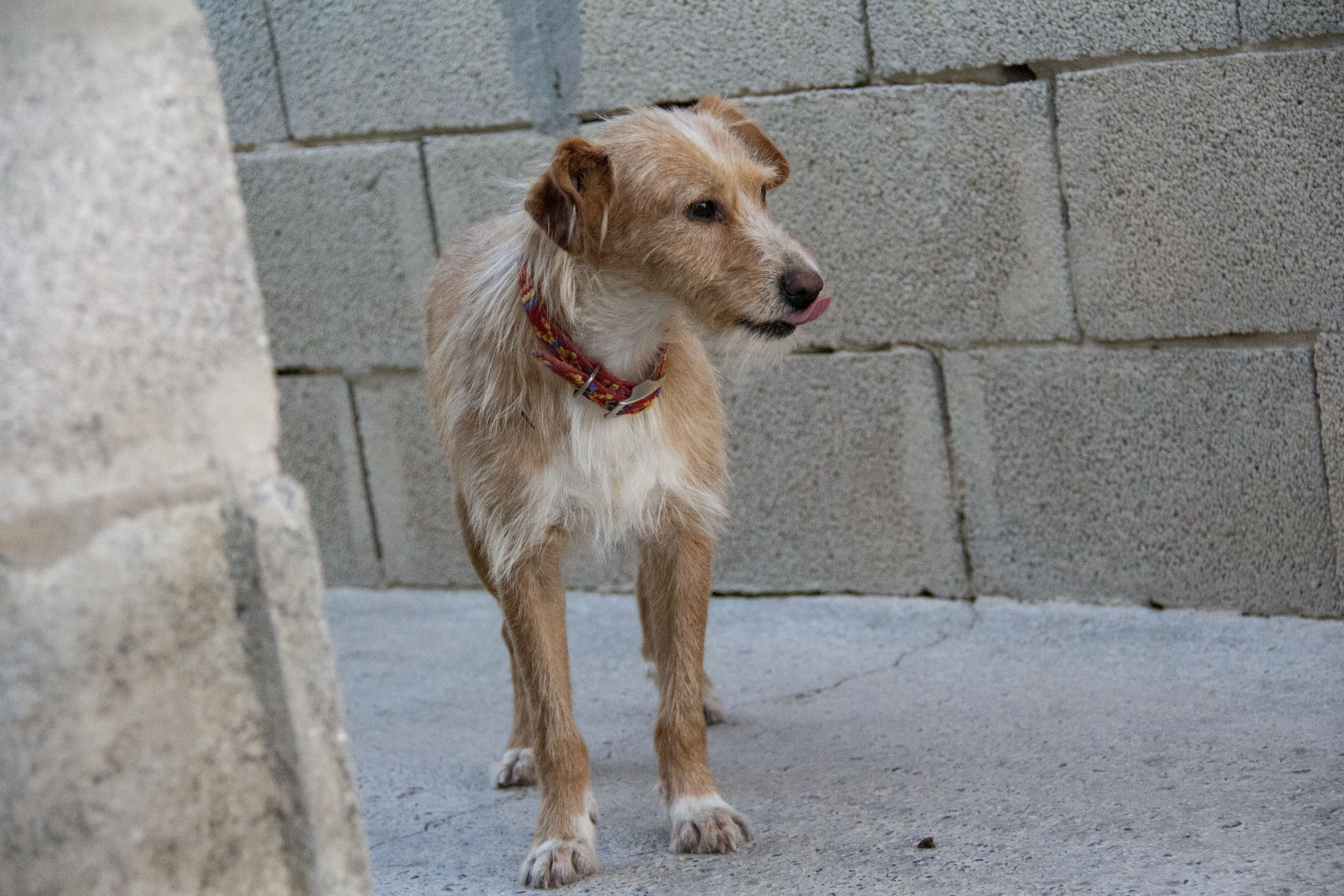 Strupi lebte an einer abgelegenen Landstrasse. Einige Personen gaben ihm zu fressen aber es gelang ihnen nicht ihn einzufangen. Melampo wurde gebeten zu helfen und mit ganz viel Geduld, täglichen Besuchen und Fütterung, ist es gelungen Strupi zu retten.