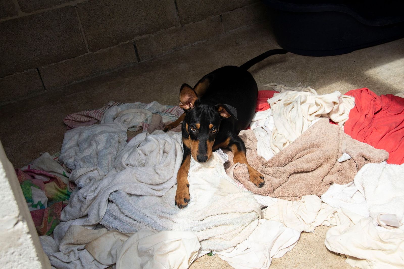 Diese vier Welpen wurden über den Zaun von Melampo geworfen, während die Helfer gerade die Zwinger reinigten und sich eine grosse Hundegruppe frei auf dem Areal von Melampo im Auslauf befand. Zum Glück wurden die Welpen beim Sturz über den Zaun nicht verletzt und auch die Hundegruppe liess die Neuankömmlinge in Ruhe.