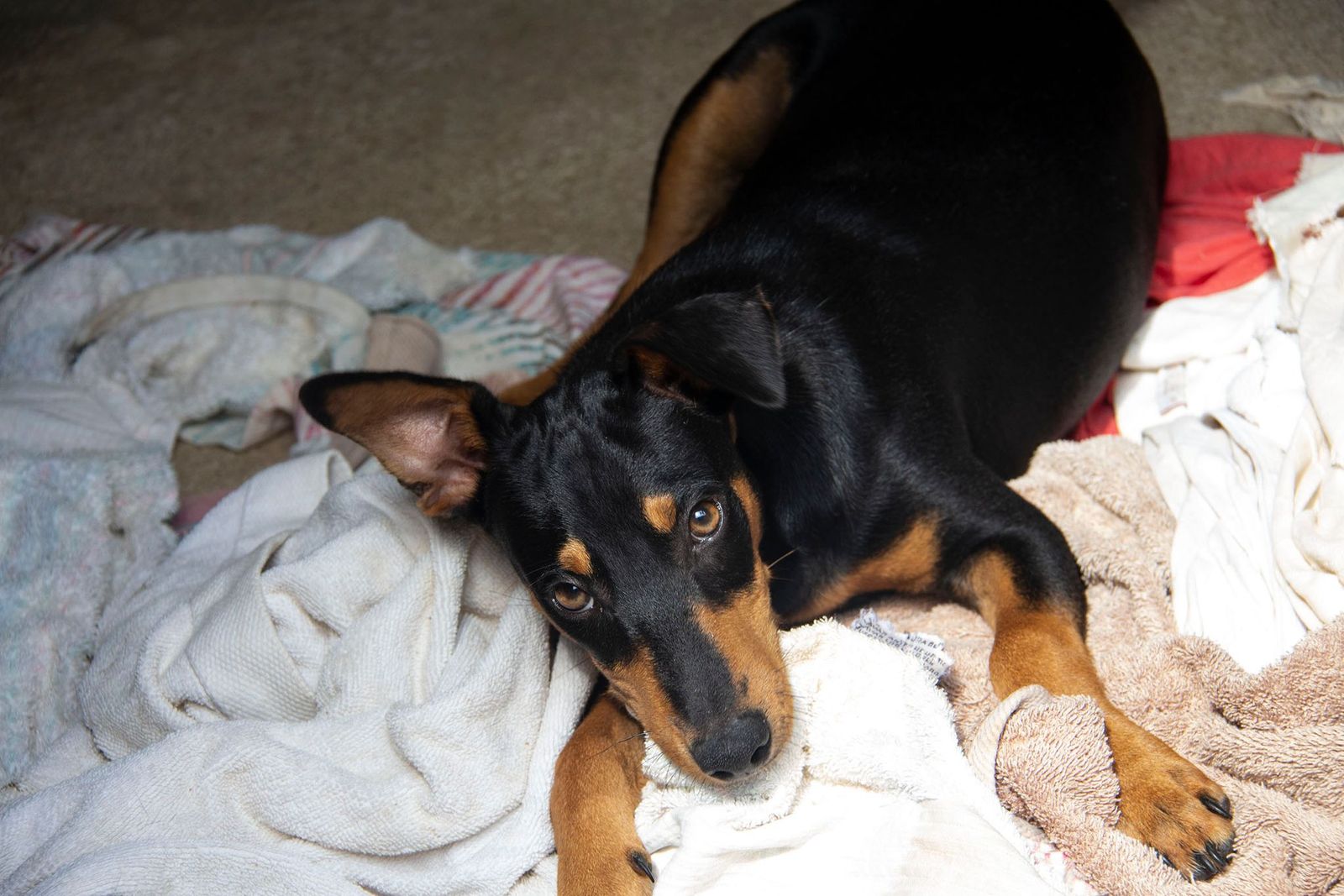 Mit ihrem Alter von vier Monaten handelte es sich wahrscheinlich um einen ungewollten Wurf. Da es wohl keine reinrassigen Podencos sind, taugten sie den Jägern wohl nicht zur Jagd. Zu ihrem Glück befinden sie sich nun in Melampo an einem sicheren Ort und sie haben die Chance auf eine glückliche Zukunft.