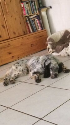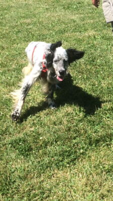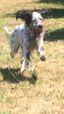 Yaco ist ein reinrassiger englischer Setter und besitzt daher ein rassebedingtes Jagdverhalten und Interessenten sollten sich unbedingt im Vorfeld über diese Rasse informieren.