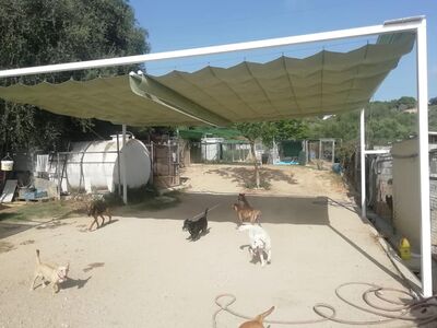 Das Melampo-Team ist dieser Firma von La Linea, TOLDOS SANTIAGO, für die großartige Arbeit, die in unseren Einrichtungen geleistet wurde, enorm dankbar. Jetzt können unsere Hunde an den heißesten Tagen mehr Schatten genießen.