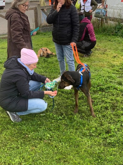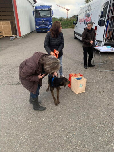 Eine Fellnase nach der andern wurde ausgeladen, und jede einzelne wurde von den neuen Besitzern wärmstens empfangen. Und wie immer dauerte es bei einigen Fellnasen etwas länger, bis sie (in der komplett neuen Umgebung!) auftauten. Bei anderen wiederum sagte nach dem Aussteigen die Körpersprache: interessant hier, was wollen wir als Nächstes unternehmen? Und wie sich dann gegen Ende sogar noch einige Sonnenstrahlen zeigten, können wir - einmal mehr - von einer