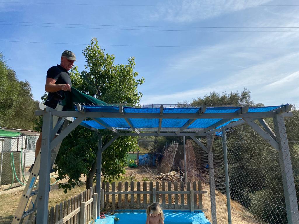 2020 haben wir auf unserer Homepage einen Spendenaufruf für ein dringend benötigtes, stabiles Sonnendach für das Tierheim Melampo gestartet. Wir danken an dieser Stelle allen Spendern ganz herzlich! Wir möchten diese wie auch die Besucher unserer homepage orientieren, dass infolge von Corona mit dem Bau dieses Daches noch nicht begonnen werden konnte. Somit mussten sich unsere spanischen Freunde – wie in den Vorjahren – mit der «Marke Eigenbau» behelfen.